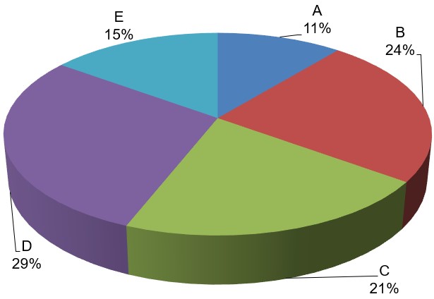 This pie chart represents a breakdown of the interprovincial Red Seal examination. Percentages are based on the collective input from workers from the trade from across Canada. The Task Matrix on the next pages indicates the breakdown of tasks and sub-tasks within each Major Work Activity and the breakdown of questions assigned to the Tasks. The Interprovincial examination based on the RSOS for this trade has 120 questions.