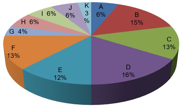 This pie chart represents a breakdown of the interprovincial Red Seal examination. Percentages are based on the collective input from workers from the trade from across Canada. The Task Matrix on the next pages indicates the breakdown of tasks and sub-tasks within each Major Work Activity and the breakdown of questions assigned to the Tasks. The Interprovincial examination for this trade has 150 questions.